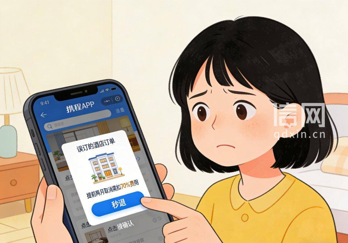 新闻漫画(来源:信号新闻)信网/信号新闻12月16日讯 北京消费者于女士在携程预订海外酒店时“手滑”选错房型,随即提交取消申请牛壹佰,尽管从预订到取消只有38秒间隔,却在2分钟后依然收到了平台发来的酒店入住凭证。由于所预订的酒店要在两个月后才入住,于女士向携程提出退订,被告知需扣除70%的费用。与携程多次协商未果后,于女士将携程全资控股、承接平台核心旅游服务业务的上海赫程国际旅行社有限公司诉至上海市长宁区人民法院。