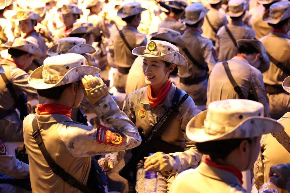 这是纪念大会开始前,受阅部队在整理着装。